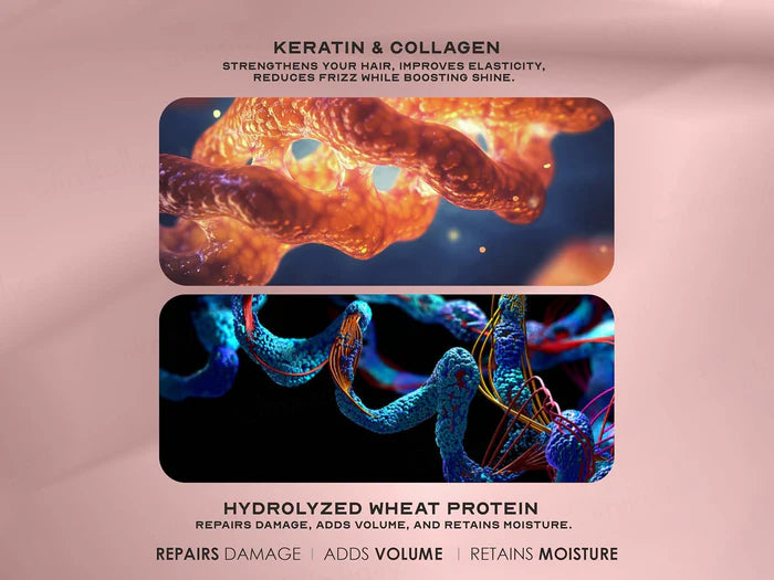 • Collagen – Enhances elasticity and hair resilience
