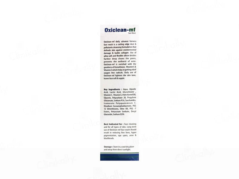 Oxiclean-MF Face Wash is an advanced daily fairness cleanser designed to protect skin from pollution, excess oil, and dullness while improving overall skin tone and clarity. Powered with gentle exfoliating acids and antioxidant-rich actives, it deeply cleanses pores, helps prevent acne, and supports collagen health. Its ultra-soft silicone bristles enhance cleansing efficiency, leaving the skin visibly brighter, smoother, and refreshed with regular use.