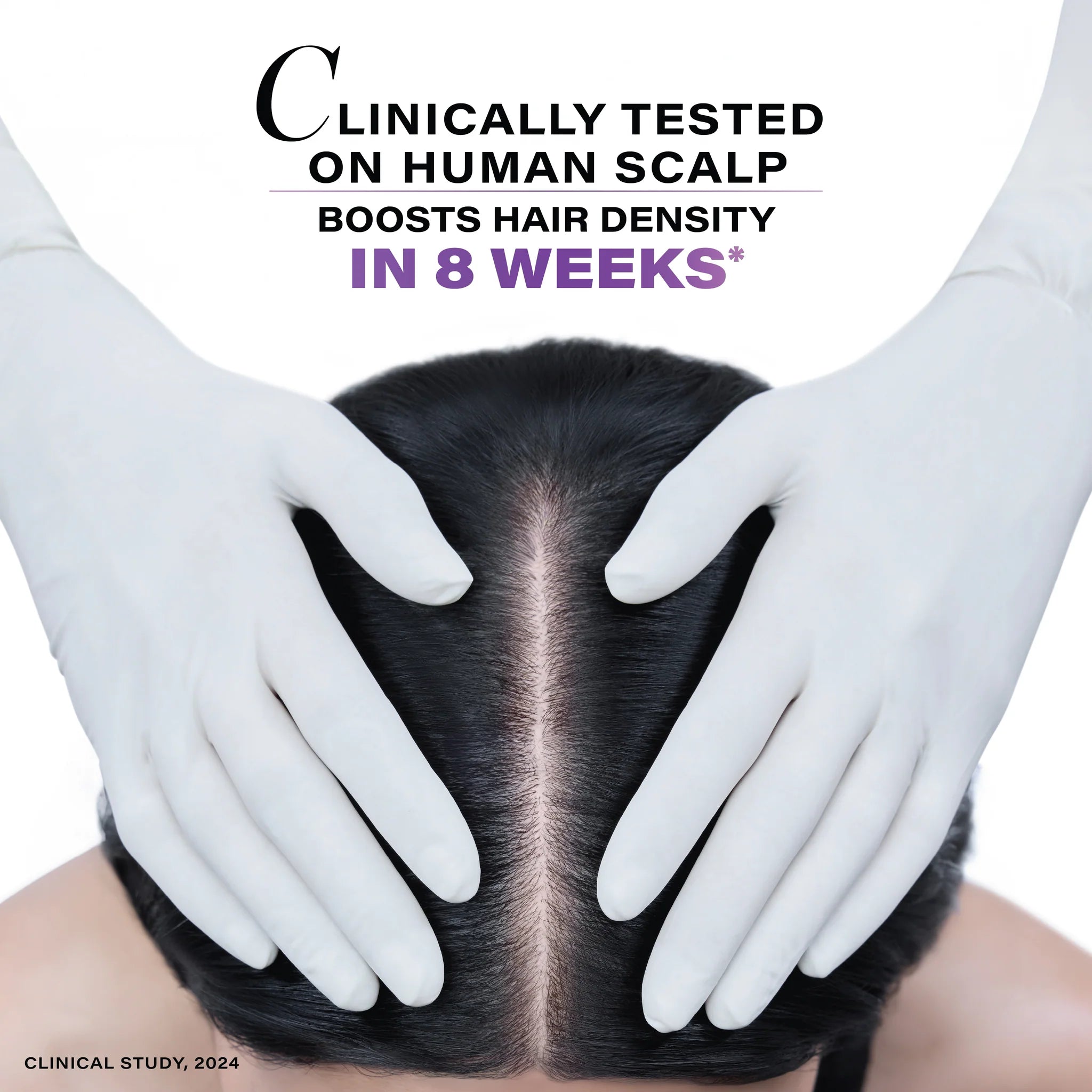 Section hair and apply 2 full dropperful evenly across scalp.